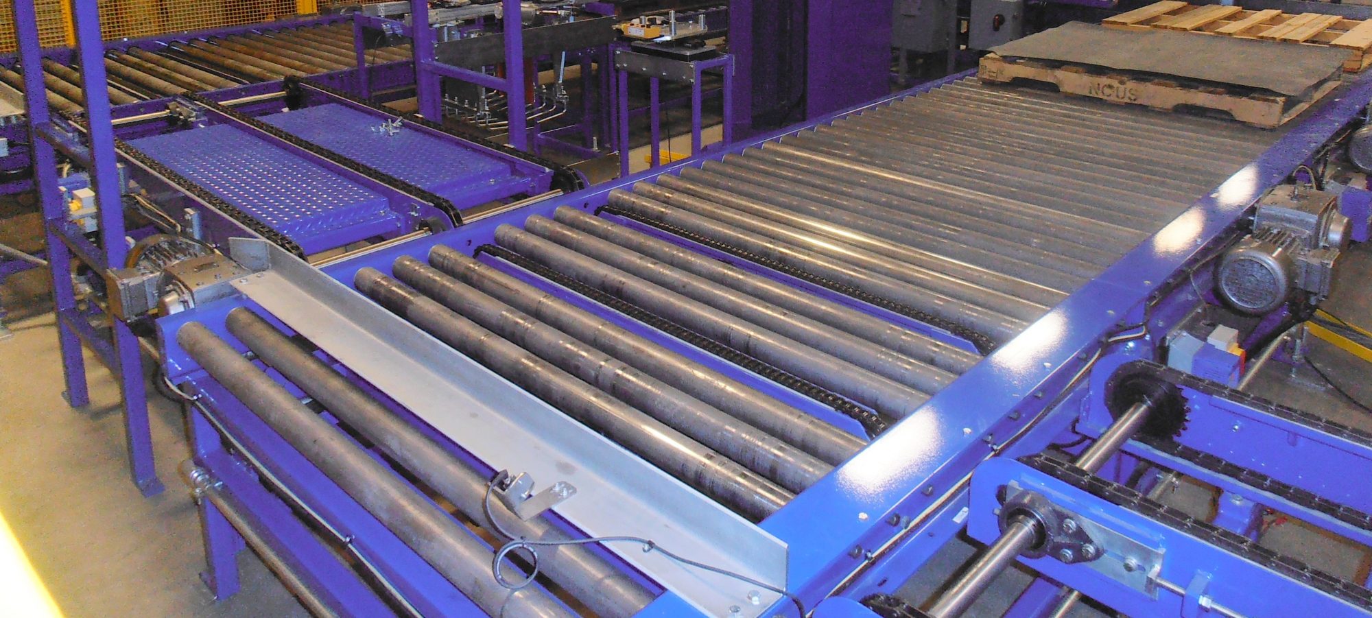 Klippenstein Corporation also can provide the material handling line to position your product for palletizing, as well as automating the positioning of the pallets and slip sheet placement. Our pallet conveyor is design to move full pallets into position for shinkwrapping or straight to loading.